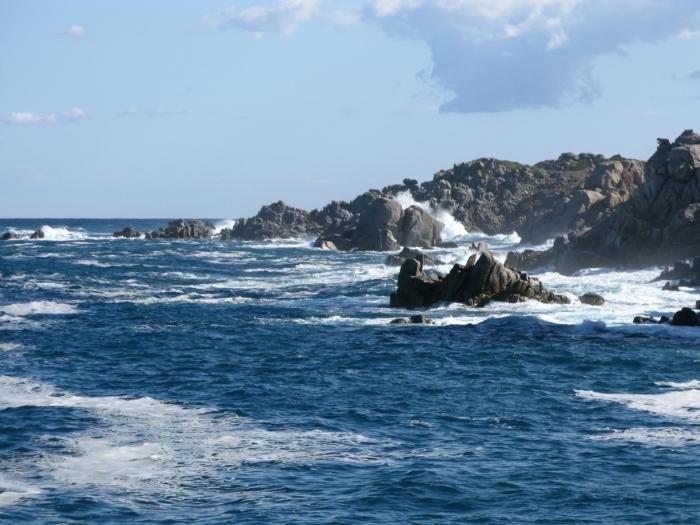 Настало время расставания с о.Сардиния.От нашего места обитания до порта Санта-Тереза-Галлура, а именно оттуда уплывают паромы на о.Корсика, было около 2-х часов езды.Имейте ввиду, что после Коста Смеральды, дорога из равнинной переходит в горную, и средняя скорость заметно подает. Тереза-Галлура очень маленький порт местного назначения, в такой же маленькой и каменной лагуне.Погрузились быстро, т.к. паромы небольшие, отплываем.Стоимость билета на машину и 2-х взрослых =73 евро. Прощай, Сардиния!
