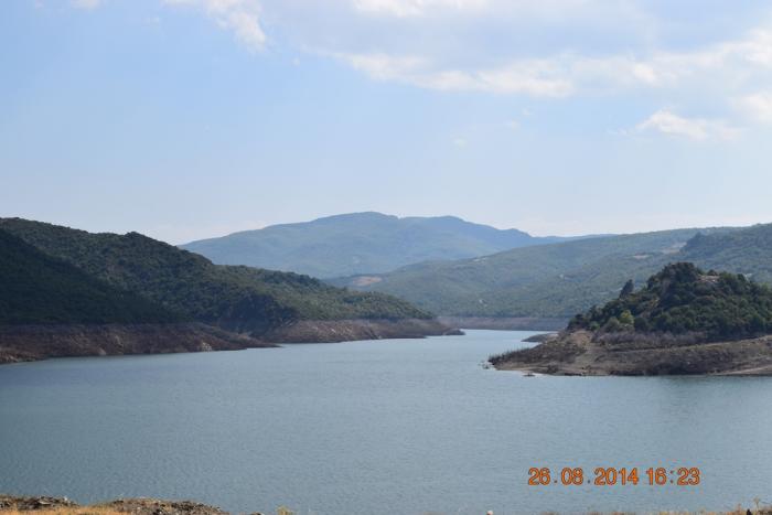 Проезжаем Трикалу, Кардицу. И после Кардицы навигатор повёл не по основной дороге на Е65 через Софадес, а через Кедрос. По карте так вроде бы и прямее получается. Но вдруг, поворот, на который указывает «Гармин» закрыт из-за ремонта дороги. От Кардицы отъехали уже довольно далеко, и возвращаться не хочется. Едем дальше. Подъезжаем к большому озеру.