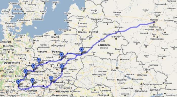 Маршрут: Москва — Белоруссия — Польша — Словакия — Австрия — Германия — Чехия — Польша — Белоруссия — Москва