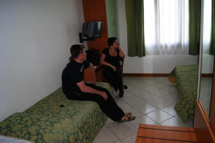 До пригорода Венеции Местре по автобану добрались быстро, часа за 1,5. Заселились в гостиницу и пошли немного прогуляться и поужинать. Оказывается в Италии 1мая тоже праздник, на площади были гуляния. Дошли до кафе, которое нам посоветовала девушка на ресепшене в гостинице. За две порции спагетти и поллитровую бутылку воды заплатили больше 30евро. (сейчас когда вспоминаем все время смеемся), Самые дорогие макароны в нашей жизни… Вернулись в гостиницу.