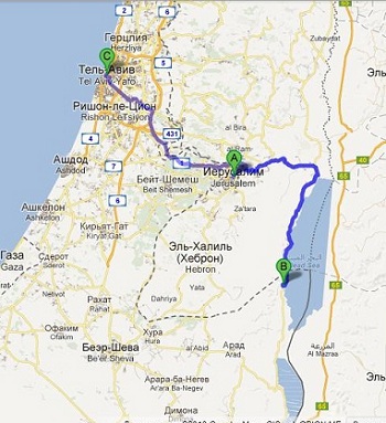 Собственно, для того, чтобы попасть на территорию Палестины сам Иерусалим покидать практически не требуется — город поделен на две части так называемой «зеленой линией» еще в 1949 году, правда с 1960 года израильтяне контролируют всю территорию Иерусалима, несмотря на то, что восточную часть заселяют практически одни арабы (около 210 тыс.чел.). На западной стороне живут преимущественно евреи(190 тыс.чел.).