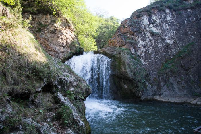 Утром умылись нарзаном, напились здоровой воды на дорожку и поехали искать Водопад 70 струй Гедмышх. Неспешно доехали до Каменномостского и по каменисто-грунтовому горному серпантину спустились в долину, где коварный Османд указал нам водопад. Аккуратная поляна, скамейки укрытые тентами, небольшое кафе с ароматами свежего шашлыка и травяного чая, очень симпатичный и скромный водопад. Группа ставропольцев на внедорожниках всех мастей.