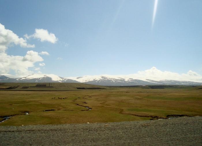 28.04.11. Встали рано, выехали из города в 9-00 утра. Сегодня в планах спуститься с Армянского нагорья к Черному морю и перейти турецко-грузинскую границу. Потеплело, наконец-то нет дождя, ласково пригревает весеннее солнце. В его лучах слева от шоссе искрится снегом массив горы Кизир-Даги высотой 3197 м. Фото 90. Типичный для Армянского нагорья пейзаж
