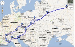 Маршрут: Санкт-Петербург-Финляндия-Швеция-Дания-Германия-Голландия-Бельгия-Франция (Альпы и Лазурный берег)-Монако-Швейцария-Австрия-Германия-Чехия-Польша-Литва-Латвия-Санкт-Петербург