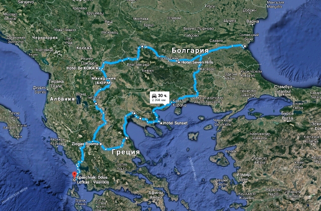 Каждое наше путешествие рождается не из головы (сели в кресло и придумываем, куда свои стопы направить), а из ситуации. Лично я доверяю именно такому построению маршрута. Несколько разнокалиберных факторов привели к тому, что мы решили лететь самолетом в Болгарию, а уж там взять машину для путешествия по Греции, от Эгейского моря до Ионического, а чтобы обратный путь не повторял прямой, ехать более северным путем, через редко посещаемую туристами страну – Македонию. В итоге сложился следующий план. 4 дня в Поморие (Болгария). 2 дня в Халкидиках. Пересечение Балканского полуострова с востока на запад с посещением Салоников и остановкой-ночевкой в Метеорах. 5 дней на острове Лефкада. Движение в обратную сторону: столица Македонии Скопье, на следующий день, уже по пути в Болгарию, посещение древнего горного монастыря. Старинный город Пловдив и вновь Бургас: куда прилетели – оттуда и улетаем. 15 дней 14 ночей.