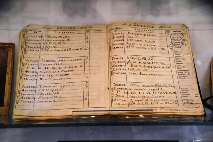 Но нет: самым интересным для себя экспонатом в двух подмосковных усадьбах Большие Вязёмы и Захарово (ныне вошедшие состав Государственного историко-литературного музея-заповедника А.С. Пушкина) я бы назвала дневник гимназиста, открытый на странице за 23 – 28 октября 1889 года: