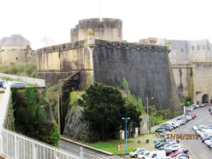 Я не буду копировать из википедии информация о Бресте, просто хочу поделиться своими впечатлениями. В день приезда шел дождь, но нас это не остановило. Для начала отправились в порт. Дошли до замка, который был построен еще римлянами, но полюбоваться на Бретанский залив и сделать фотографии не представилось возможным. Все сливалось с серым небом. Поднявшись вверх по каменной набережной, мы оказались на улице Сезам у здания мэрии. В поисках чего-нибудь перекусить мы сначала забрели в странное кафе, где люди сидели за столиками и читали. Стоило нам заговорить, как все отложили чтиво и уставились на нас осуждающим взглядом. Пришлось ретироваться. В клуб читателей нас не приняли. Нормальное кафе оказалось рядом. Официант попробовал поговорить с нами на английском, но поскольку говорил он очень бегло мы его вообще не поняли и просто ткнули пальцем в салат и антрекот. Порции были впечатляющими, цена тоже. Заметно повеселев после обеда мы еще прогулялись под дождем, нашли продуктовый магазин Карфюр и решили купить что-нибудь на ужин. Сразу хочу сказать, будучи в других странах покупайте только то, что знаете. Если на товаре написано «деликатес», то вовсе не значит, что это вы сможете съесть. Тем более, что французские деликатесы весьма специфичны.