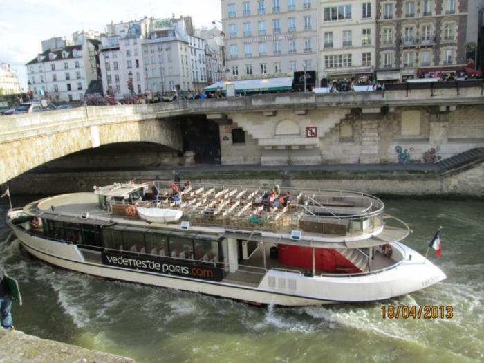 Выйдя из храма, мы отправились на другой берег Сены и через несколько минут оказались на площади Сен Мишель перед монументальным скульптурным сооружением – фонтаном Сен Мишель. Совершено обалдевшие от впечатлений, мы заметили слева уютное кафе со столиками на улице и решили немного отдышаться. Когда подошли поближе показалось, что свободных столиков нет. Немного расстроенные, мы уже собирались уходить, как проходившая мимо официантка сказала: вон тот угловой столик свободный, можете присаживаться… После Марии из Бреста такого шока уже не было, но удивления скрыть не удалось. В кафе оказалось бургундское вино, которое мы с наслаждением потягивали, рассматривая окрестности и не веря своему счастью. В этом районе Парижа оказалось довольно много кафешек с русским меню и русскоговорящими официантами. По крайней мере так было в 13 году.
