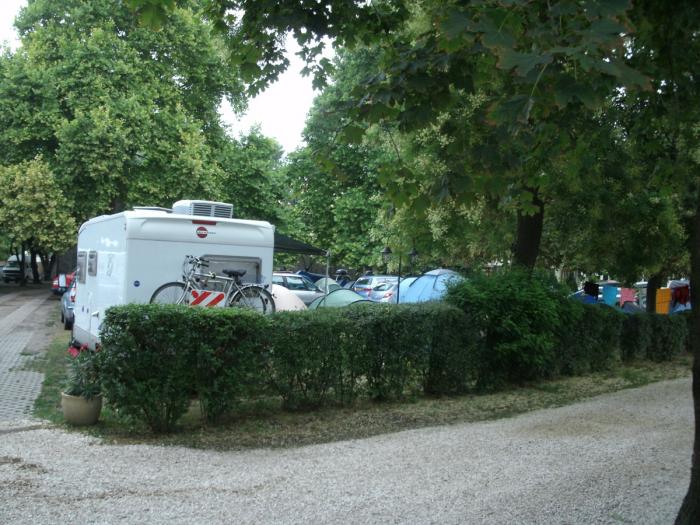 Ехали-ехали по городу и вот он, наш кемпинг. Прямо в черте города, среди городской застройки, небольшой участок земли сплошь заставлен автодомами и палатками. Приехали. Начинаем осматриваться.