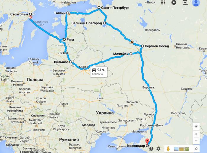 Краснодар — Сергиев Посад — Александров — Великий Новгород — Санкт-Петербург — Таллин — Рига — Стокгольм — Вильнюс — Минск — Смоленск — Кубинка — Краснодар