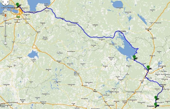 Санкт-Петербург — поселок Ботово — Череповец — Рыбинск — Ярославль — Шексна — поселок Ботово — Санкт-Петербург