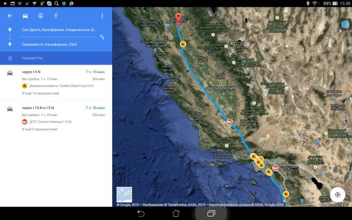 Из википедии взял GPS координаты мест, куда запланировал поехать, с карт Google — координаты мотелей.