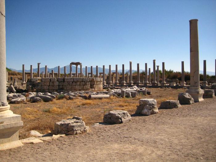 А сейчас мы отправляемся от Южных бань к расположенному на противоположной стороне Эллинистических ворот главному торговому центру города – агоре. Уже от самого входа на территорию руин Перге виден окружающий ее лес колонн из асуанского гранита: