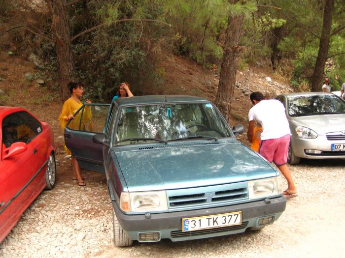 И вот наша дружная компания загружается в Мерседес в Тофаз Фатиха. Мы все-таки решили подъехать поближе к каньону, к самым воротам, где традиционно турки снимают по 5 лир с человека. Машину на стоянку, дальше пешком: