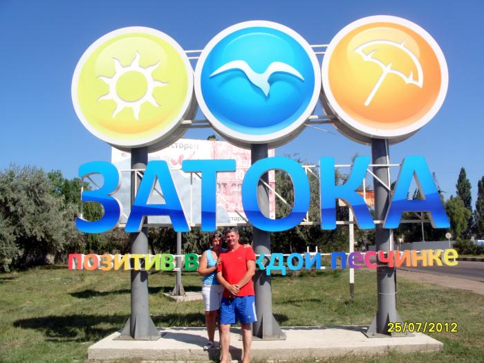 И еще пара слов за саму Затоку. Все время нашего пребывания на побережье стояла замечательная погода. Дневная температура колебалась от 34 до 38 градусов. Лозунг этого курортного поселка написан при въезде, он нам понравился и мы старались ему следовать в течение всего отдыха.