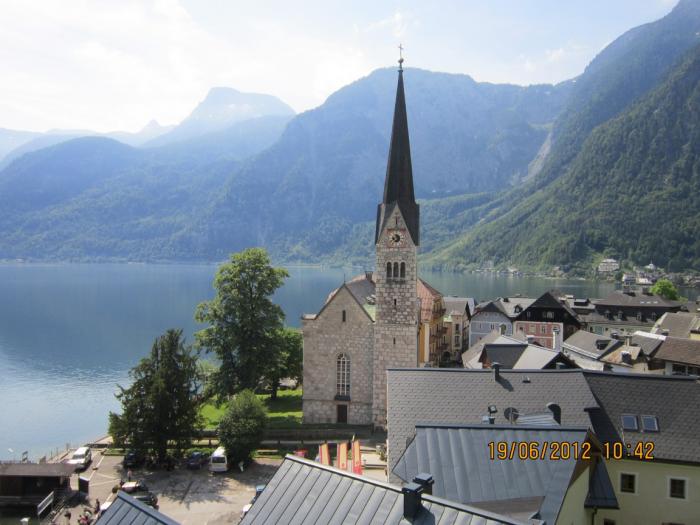 Когда планировали поездку, то нам (а особенно мне) очень хотелось посмотреть Альпы. Там в каждом уголке можно «зависнуть» по месяцу и более — в любой сезон и на любой вкус. Нам приглянулся вот такой уголок — Не знаю как это перевести. Словарь даёт Dach=крыша Stein=камень, а Salzkammergut нашёлся в гугле как «кладовая соли». Поскольку нам на остановку в Австрии отводилось 2 дня, то даже в этом районе мы увидели лишь очень малую часть всех красот.