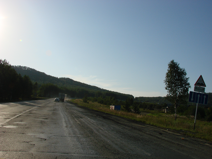 Вот кусок М5-Урал где-то в горах за Миассом. Мягко говоря трасса не ахти.