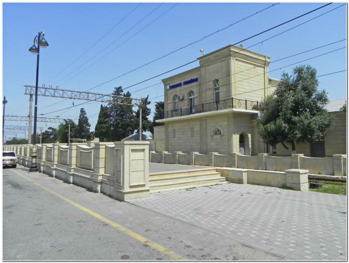 Ехать нам до конца, то бишь до железнодорожной станции Сураханы. Здесь уже впору вспоминать о контрастах. Автобус прибывает на пыльную привокзальную площадь, на которой с советских времён мало что изменилось. Но вот со стороны железнодорожных путей станция больше походит на дом-дворец горского еврея.