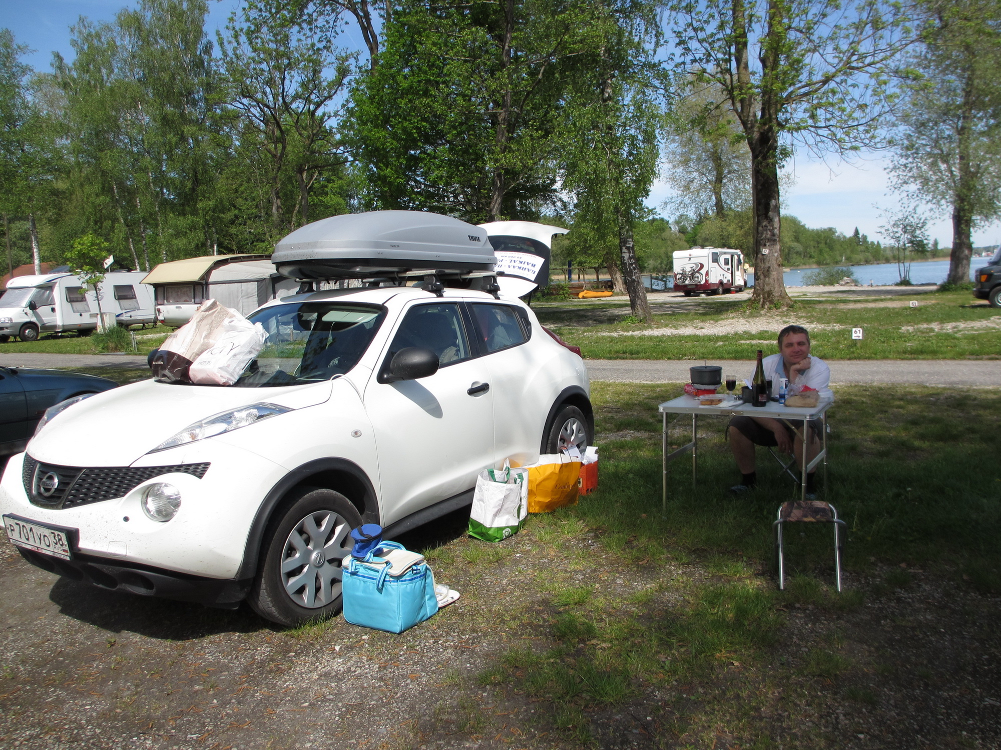 Пробыли в Милане два дня, дальше держим путь до Австрии, едем в Вену.Где то по дороге решили свернуть, чтобы отдухнуть на природе и останавливаемся на кемпинг поляне, территория немецкая, где то рядом город Зальцбург.Но место куда мы попали, потрясло меня до глубины души, потому что это был настоящий и абсолютно благоустроенный лес на берегу какого то чудесного озера.В этой чудной роще было всё, водопровод с питьевой водой в кранчиках, электричество, туалетный корпус с душевыми кабинами и стиральными машинками, интернет вайфай, мини бар, и при этом лесные птички чирикают, повсюду столетние деревья, чистота, порядок ни мусоринки, рыбаки тихо сидят, обалденный лесной запах.Из отдыхающих исключительно одни пенсионеры, приехавшие с домами на колесах.