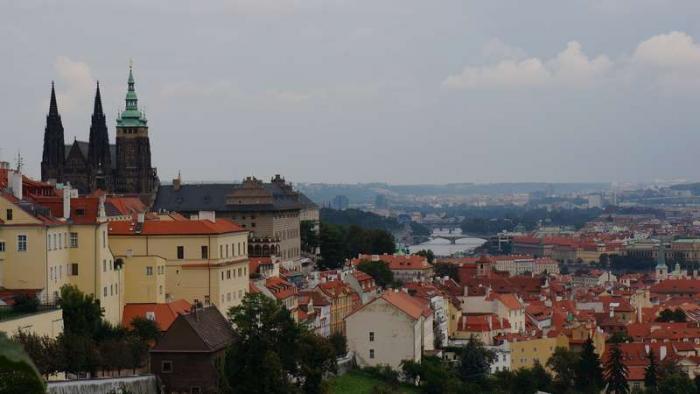 Утром, позавтракав, выходим в город.автобус 207 доставляет нас к самому центру к Староместской площади, правда остановка естественно не на самой площади, являющейся одной из главных достопримечательностей Праги, до нее надо еще дойти.Ну а пока наслаждаемся видом на Пражский Град, туда нам еще предстоит проехать позже