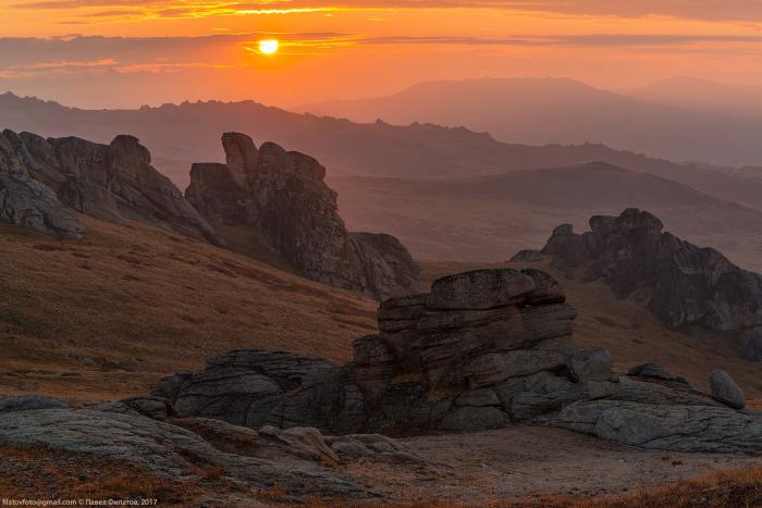Морозным, но солнечным утром участники экспедиции разбрелись по урочищу, затерялись между множества скальных изваяний.