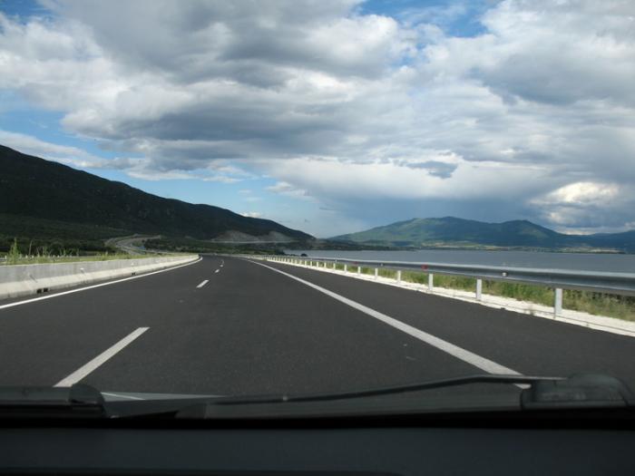 С утра небо было затянуто облаками, и прогноз не обещал пляжной погоды. Было решено ехать в Салоники. Доехали быстро, расстояние около 80 километров по магистральной дороге. Дорога идет по перешейку, что в основании полуострова Халкидики, слева от дороги несколько обширных озер с пресной водой. Пейзаж идиллический, поля возделаны и ухожены, дома опрятны, дорога прекрасная.