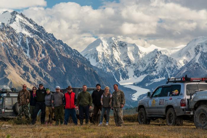 Фото 7. Команда «Алтайского ожерелья» на фоне Северо-Чуйского хребта.