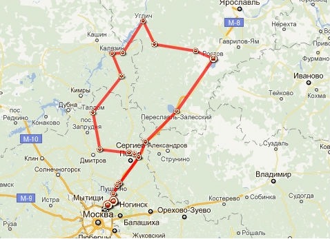 За выходные накатали 600 километров по маршруту Москва — Калязин — Углич — Ростов Великий — Москва, хорошее колечко получилось. Участники: я, Иван Михайлович (год и четыре месяца), молодая супруга и наш боевой Ford Escape.